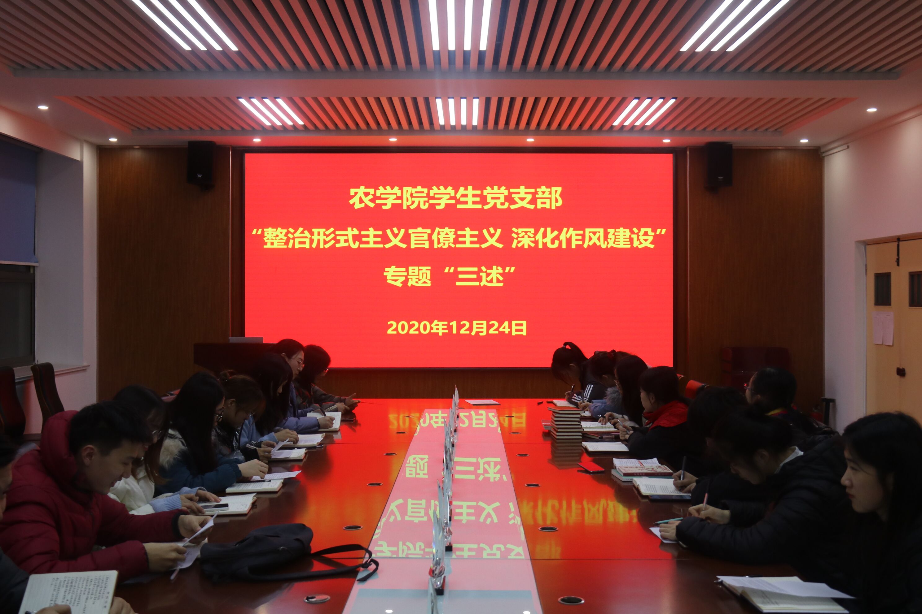 12月24日,皇冠welcome体育登录入口学生党支部于生物楼开展“整治形式主义官僚主义,深化作风建设”专题“三述”活动,学院党总支副书记、第三党支部书记马伟萍,第三党支部副书记刘宁和全体学生党员参加。