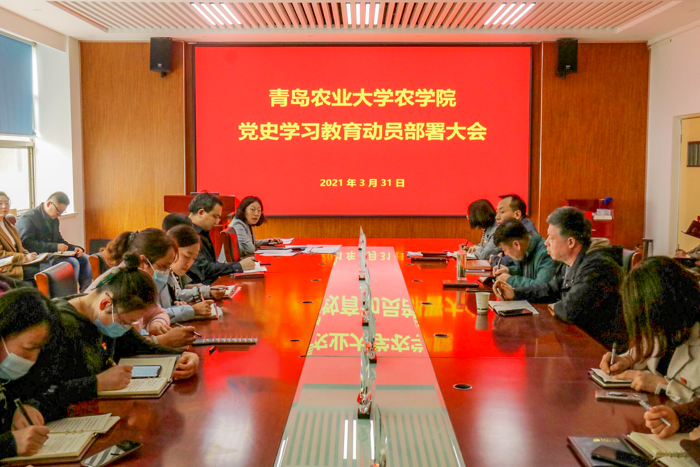 张玉梅结合《学院党史学习教育工作方案》和学院工作实际,就做好党史学习教育提出三点要求。一是要提高政治站位,增强政治责任感和使命感,让党史学习入脑入心,从党的伟大发展征程中汲取力量,用党的创新理论武装头脑坚定理想信念,增强为人民群众、为师生谋福利的为民情怀。二是要学深悟透,确保教育实效,要制定好学习计划,创新活动形式,把党史学习教育融入立德树人全过程,真正做到学党史、悟思想、办实事、开新局。三是要深刻把握党史学习的重点内容,深刻认识中国共产党百年奋斗的光辉历史,坚持做好理论学习,确保学习质量,把学习成效应用到工作实践中,结合习近平总书记给全国涉农高校的书记校长和专家代表的回信精神,全面推进学院的高质量发展。