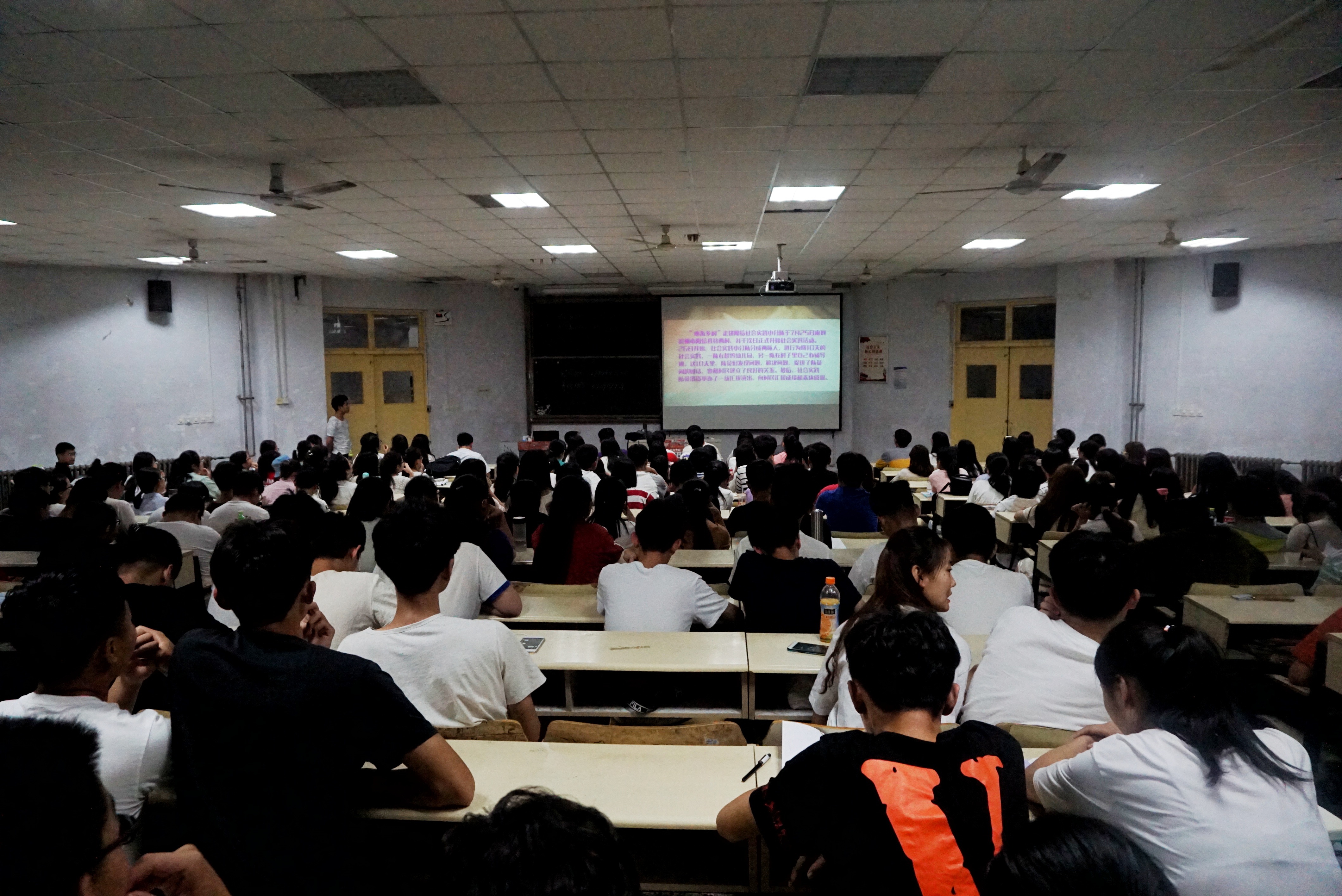 第一个阶段是由烟草1601、烟草1602、农学1601、种子1602四个团队以ppt的形式,分别在前期准备、活动内容、注意事项、新闻报道等几个方面向同学们分享了自己团队在实践中的经验、建议和收获,最主要的是向同学们强调了实践活动的宣传工作,完毕之后并附加观看了每个团队自己的实践视频。丰富多彩的实践生活视频让同学们看的津津有味,再加上每个团队对社会实践的精彩演说,无不让每个同学内心充满了对实践生活的期待和向往,鼓舞着每个同学加入这个意义活动中来。紧接着进入第二个阶段——2018年暑假社会实践动员大会。主讲人从活动主题、活动内容、工作安排、相关附件、时间要求这五个方面详细向同学介绍了接下来的社会实践将要做的具体工作,还强调要求了不要照搬照抄,每年每班的社会实践都要力求创新。最终主持人呼吁大家一起奉献出自己的一份力量,积极投入到社会实践中去,充实自己的大学生活,为提高自己以后的社会适应能力做好基础。