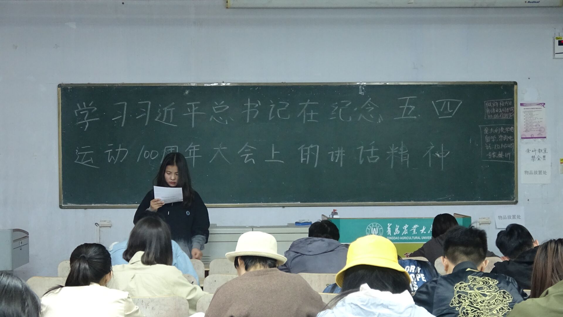 5月5日,皇冠welcome体育登录入口在教学区开展“学习习近平总书记在纪念五四运动100周年大会上的讲话精神”主题团课,旨在让同学们弘扬五四精神,增强青年责任感。学院2017、2018级学生积极参加。