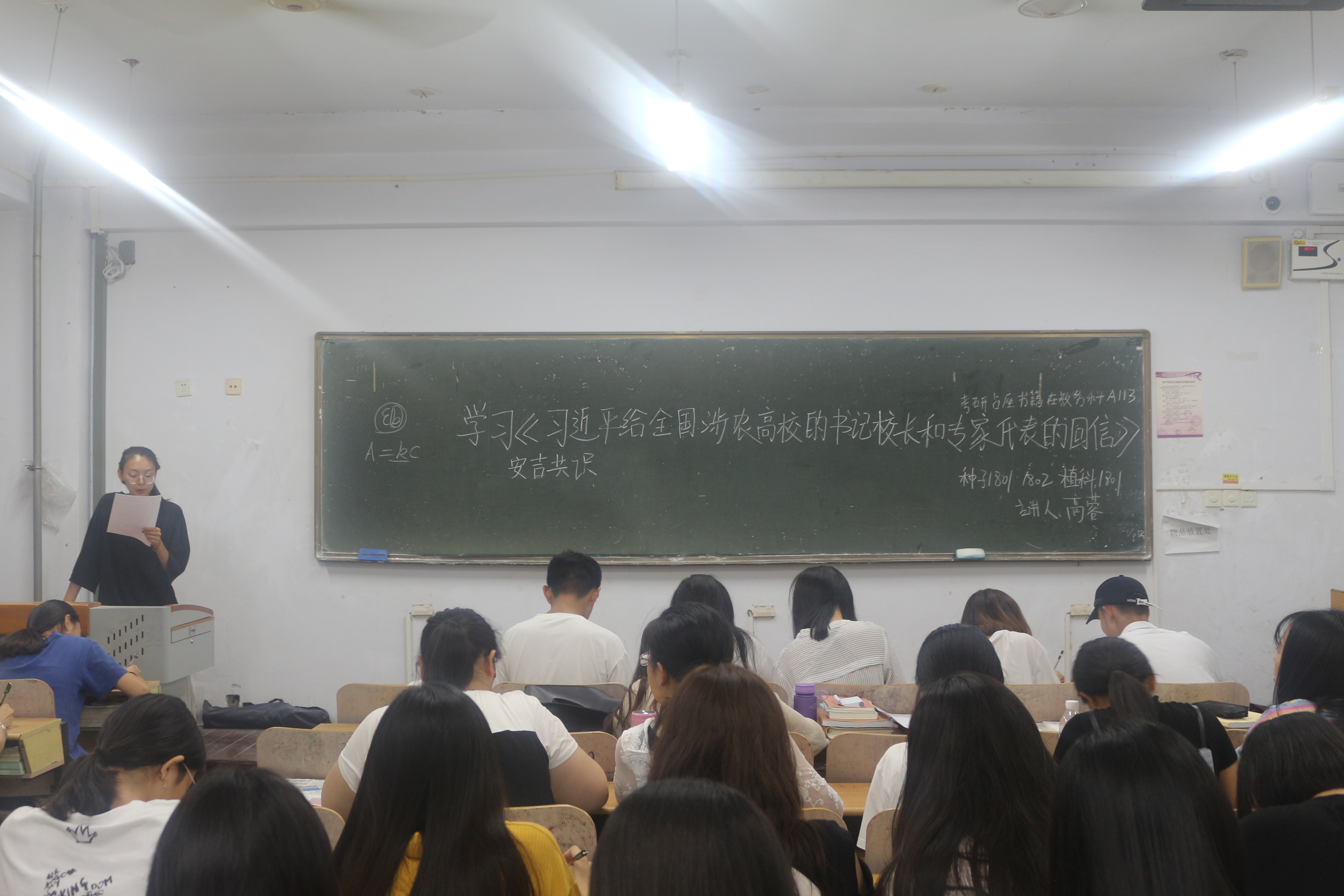 9月8日,皇冠welcome体育登录入口在教学区开展“学习《习近平给全国涉农高校的书记校长和专家代表的回信》”主题团课,2018级全体团员参加。