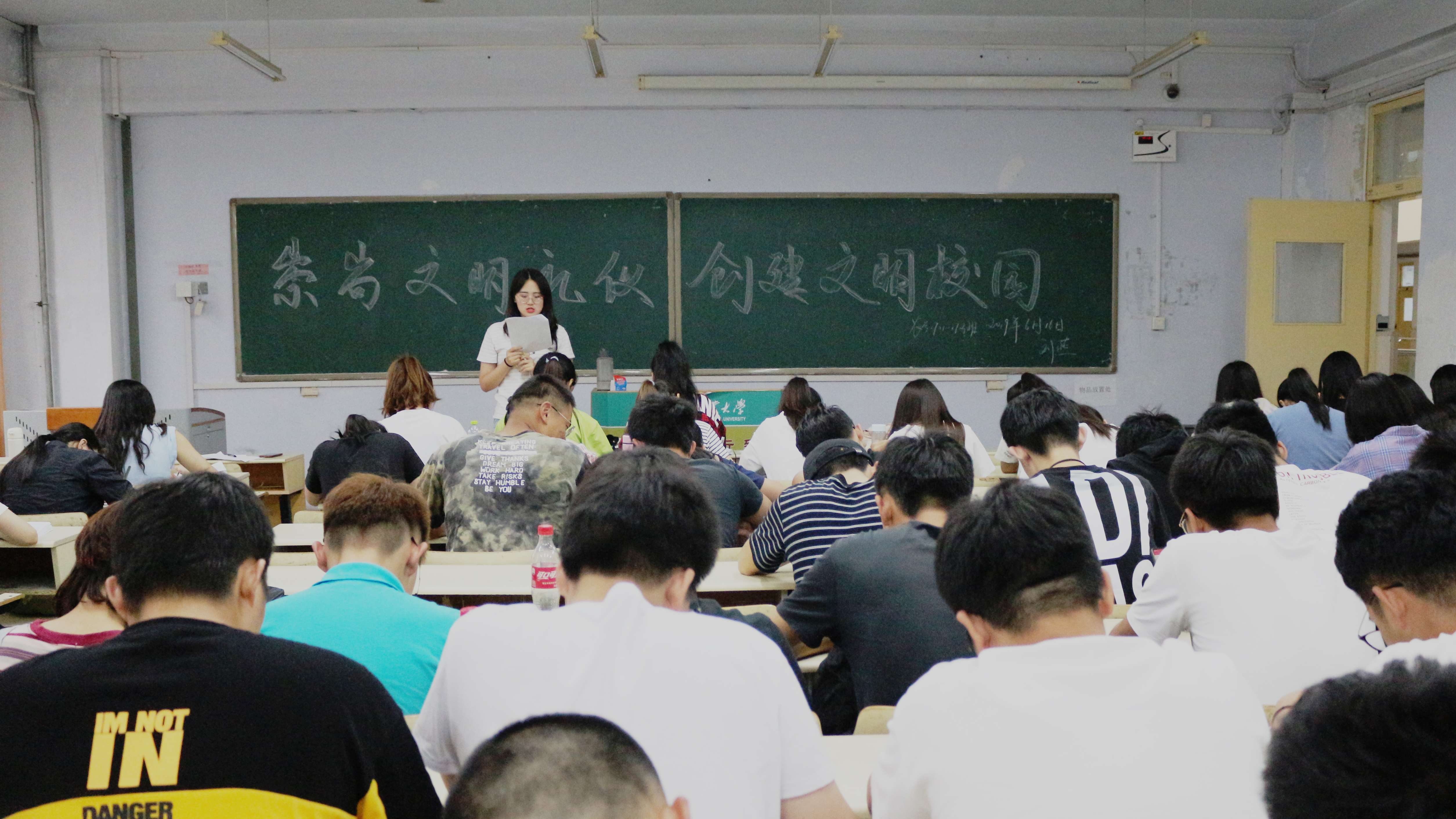 为提高广大团员责任感,树立爱校荣校意识,6月16日,皇冠welcome体育登录入口于教学区开展“崇尚文明礼仪,创建文明校园”主题团课,2017、2018级全体团员积极参加。