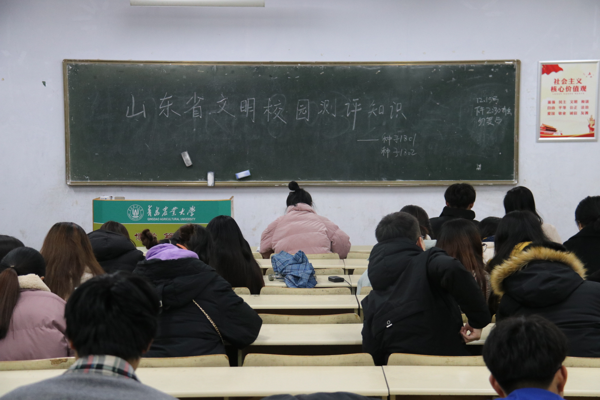12月15日,皇冠welcome体育登录入口于教学区开展“学习《山东省文明校园测评普及知识》”主题团课,旨在创建文化浓郁,适于学生学习、生活和成长的文明校园。2018、2019级学生积极参加。