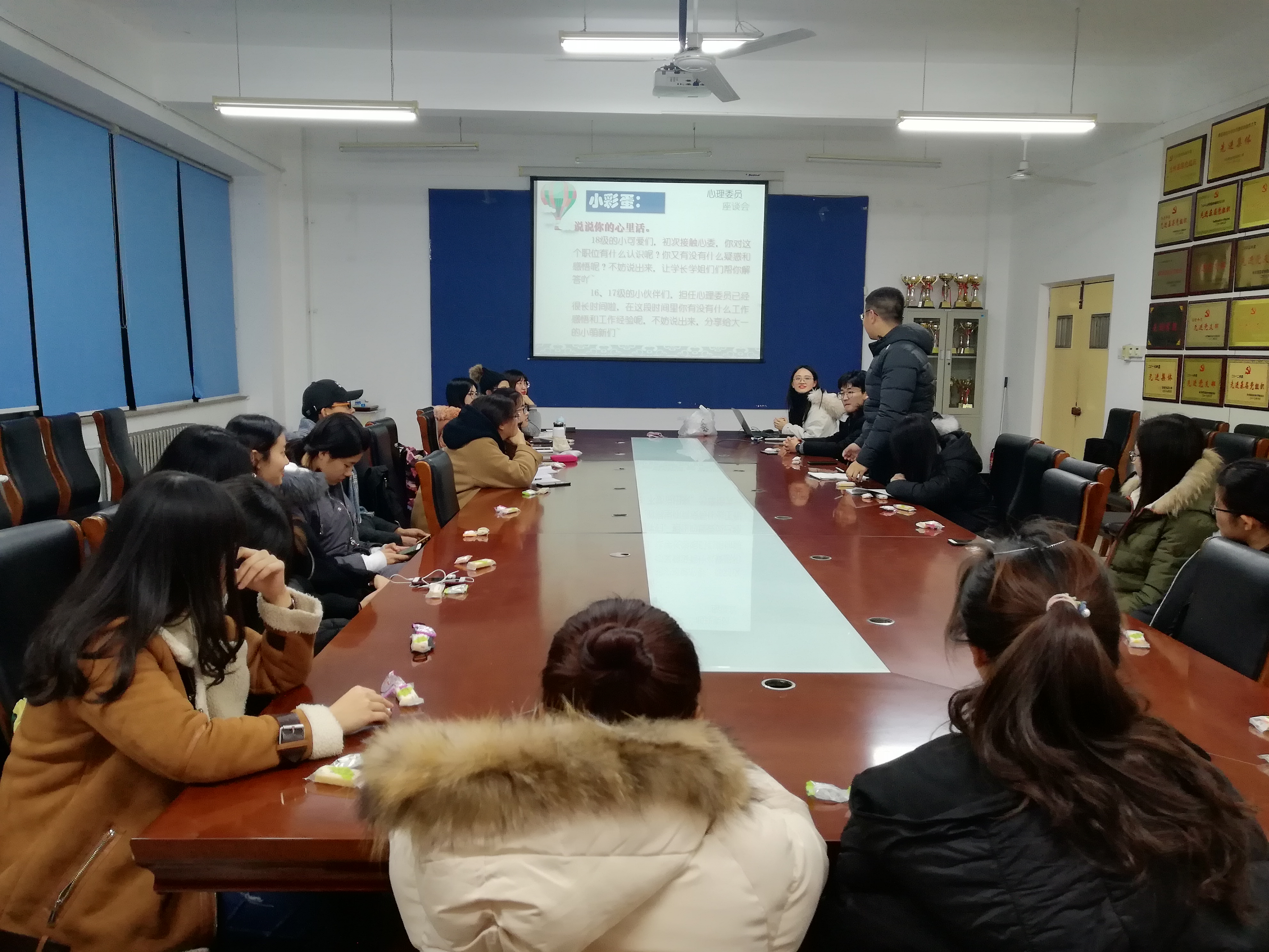 12月14日,皇冠welcome体育登录入口于生物楼N区开展“交流的是语言,沟通的是心灵——心理委员茶话会”,旨在宣传普及心理健康知识,提高心理委员的理论素养和工作能力。此次茶话会由学院学生会心理发展部部长单良主持,各班心理委员参加。