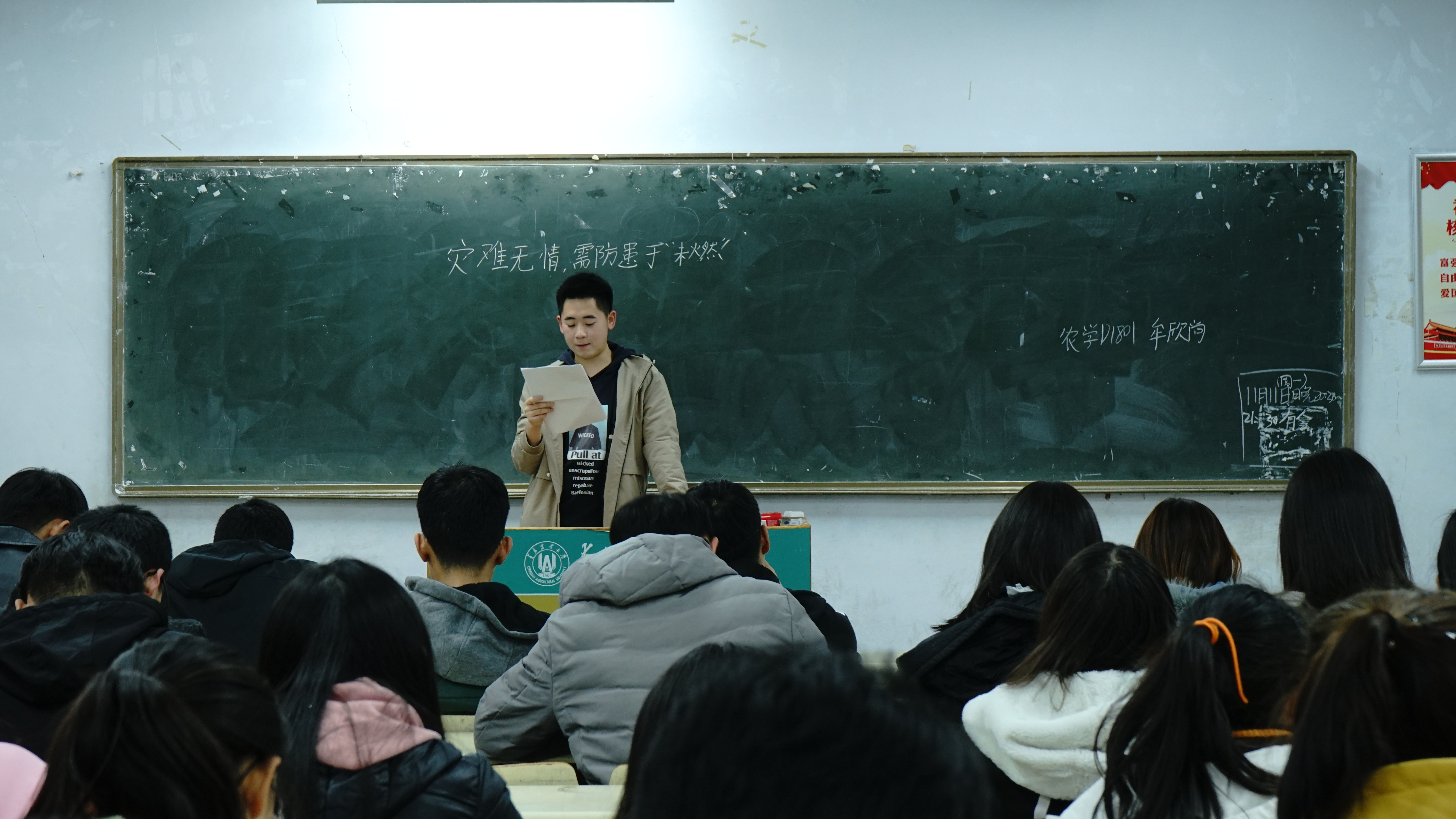 为强化校园安全教育,加强同学们的消防意识,创建平安校园,11月10日,皇冠welcome体育登录入口于教学区开展“强化消防意识,消除火灾隐患”主题团课,学院2018、2019级全体团员参加。