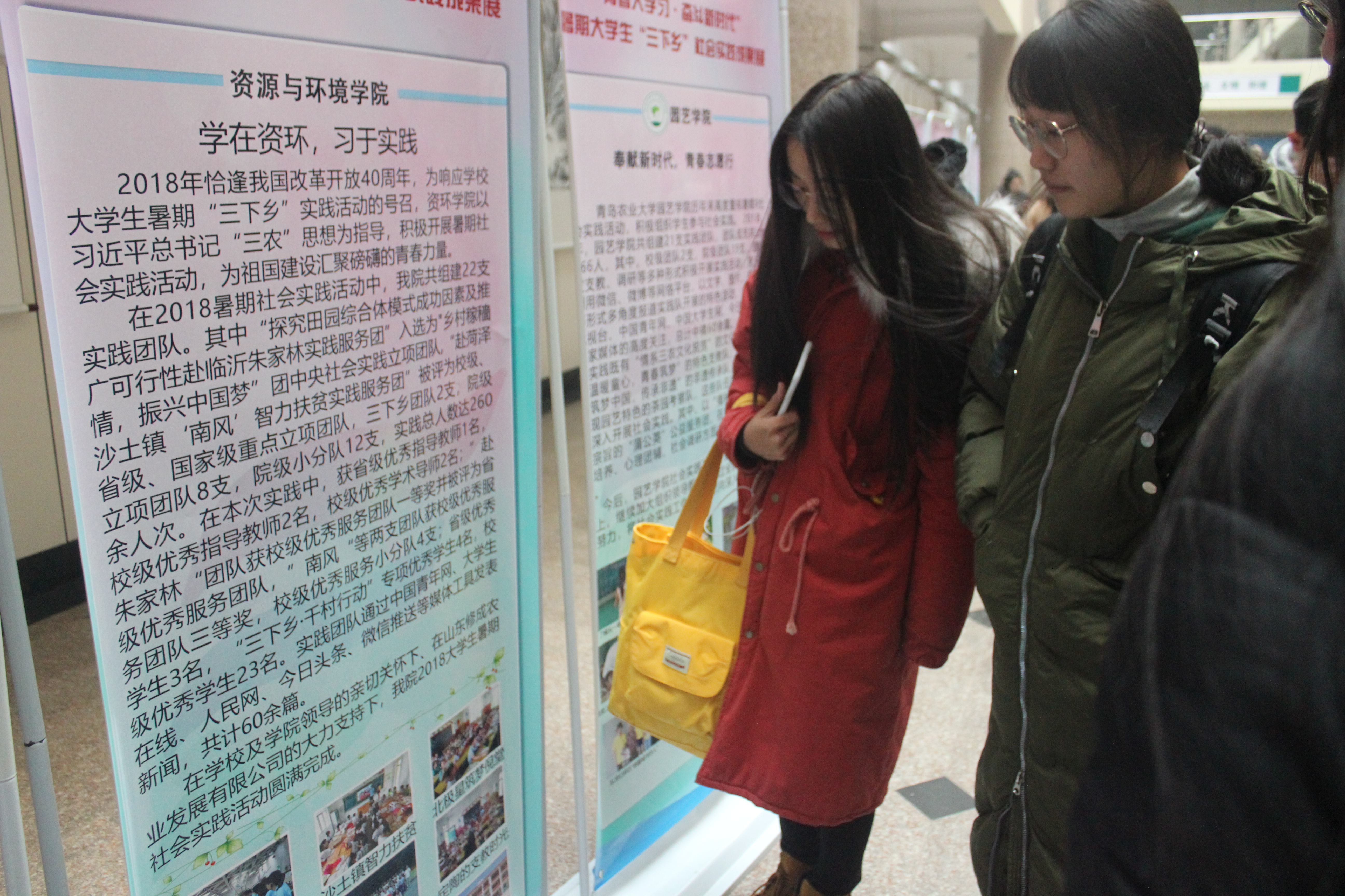 为增强学生社会服务意识,培养学生的创新实践能力,12月13日,在皇冠welcome体育登录入口团委的带领下,学院师生代表到教学区A区大厅对暑期实践成果展进行参观交流。
