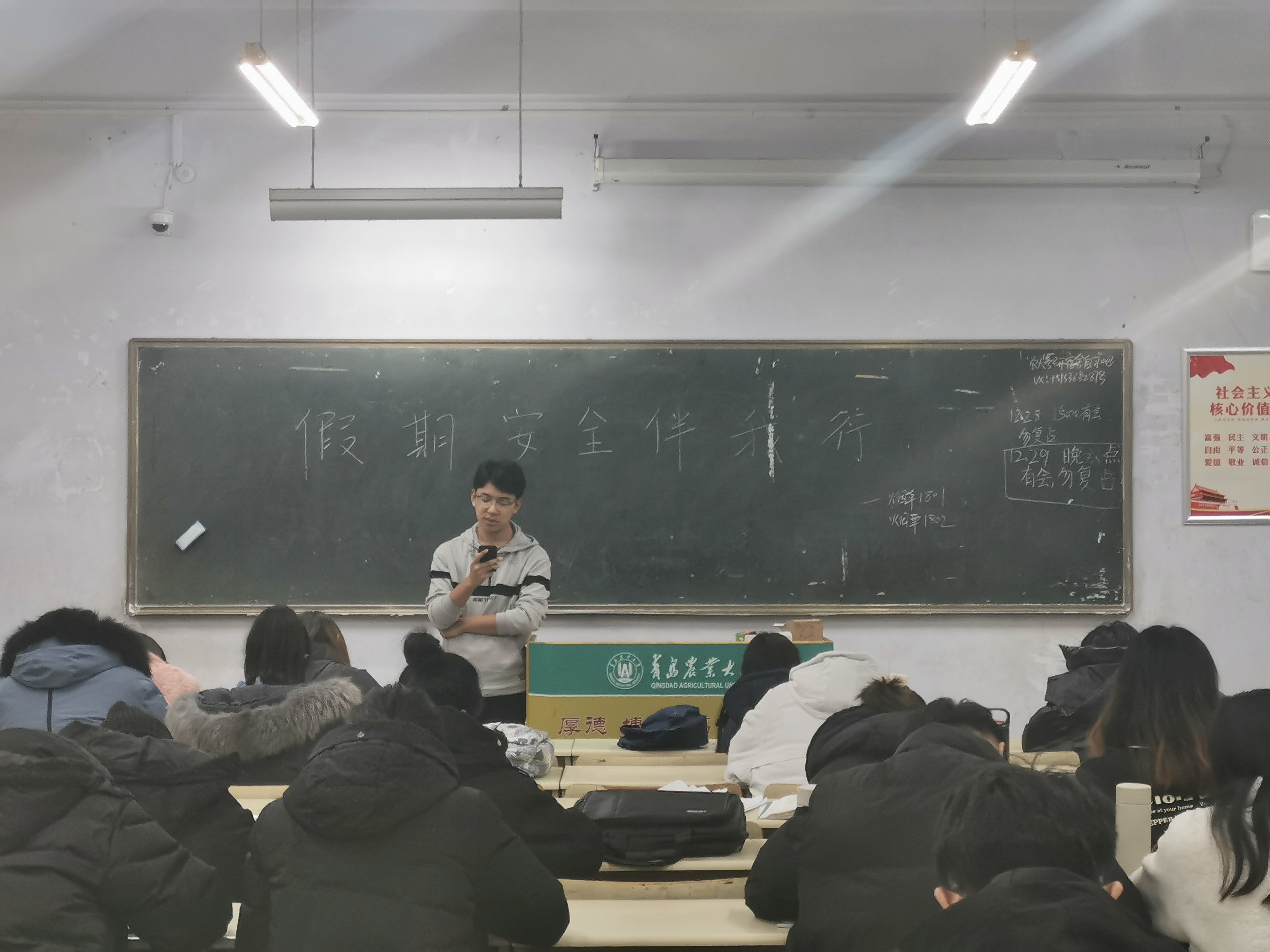 12月29日,皇冠welcome体育登录入口于教学区开展学习“假期安全伴我行”主题团课, 2018级、2019级全体学生积极参加。