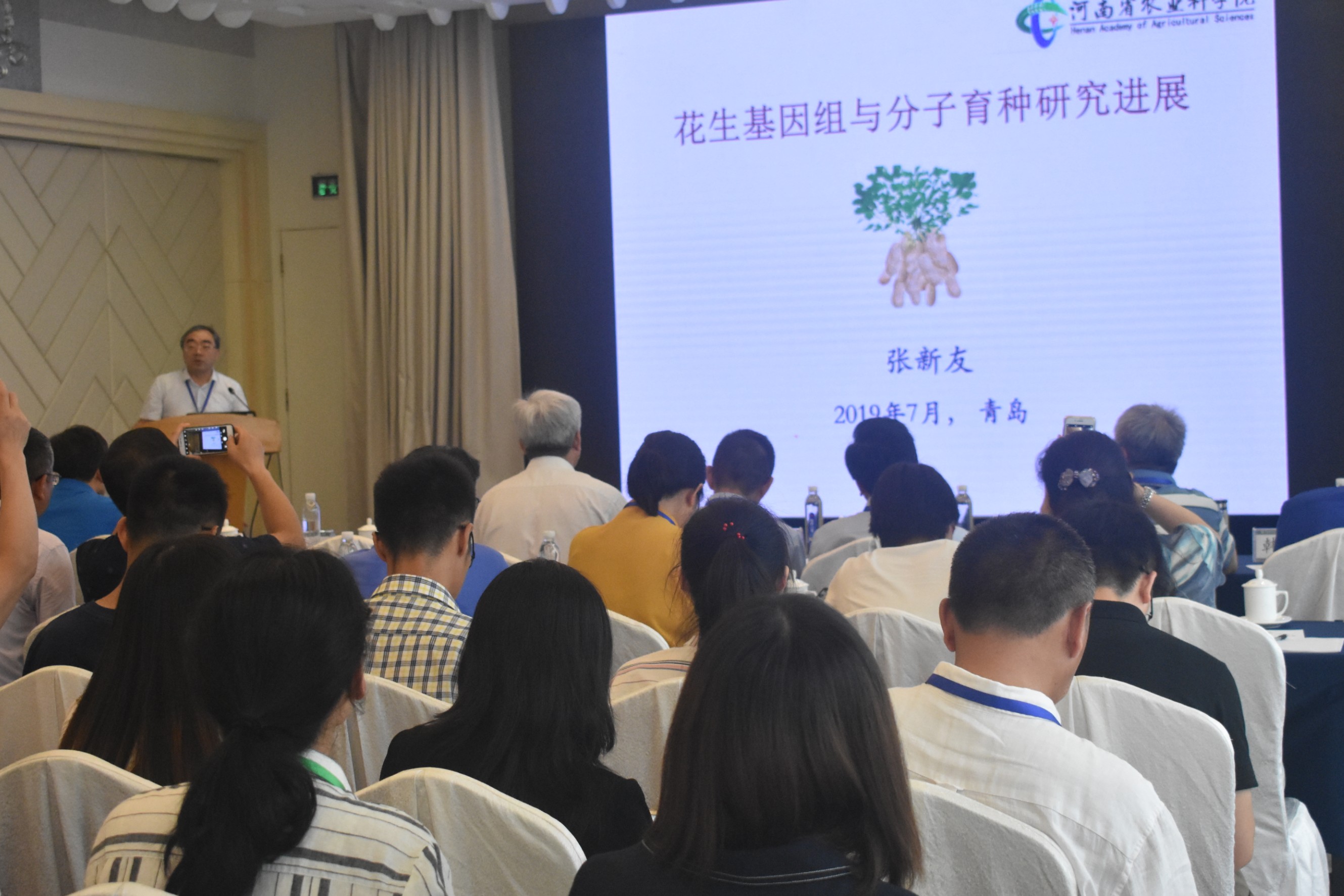 张爱民详细介绍了小麦全基因组研究,肖世和系统讲解了我国小麦产业技术现状并作出展望,孔令让则对长穗偃麦草基因组进行了解析并解读了重要基因的克隆与应用;马峙英就多抗优质高产棉花育种基础研究与应用做了精彩的报告,他细致的讲解了优异种质的筛选,育种技术的创新与应用以及多抗优质高产新品种的选育。徐云碧就作物大数据与人工智能育种进行了专题报告,就什么是大数据、大数据如何促进育种发展等问题进行解读,呼吁行业更加关注大数据在农业生物领域的发展与应用。刘学锋细致解读了大数据分析在生物科学方面的应用;对于基因组测序,Sachiko Isobe在报告中明确植物基因组测序的途径,严建兵则从植物单细胞入手,系统介绍植物单细胞测序的目的、进展、应用,闵家祥更为深入地讲解了选择性剪切在植物育种中的应用。巩志忠报告了ABA信号传递和植物抗旱相关内容,就研究植物抗旱背景、ABA抗旱机制等做了系统的阐述。赖锦盛讲述了玉米基因组学和分子育种内容,张洪霞则介绍了细胞壁蔗糖转化酶GIF1在提高玉米产量和品质中的功能研究。张新友、万建民、韩天富教授、李英慧、马代夫、金黎平、刁现民围绕花生、水稻、大豆、甘薯、马铃薯、谷子作物,报告了花生基因组与分子育种研究进展、水稻分子设计育种、大豆光温生态适应性及其生物学基础、大豆抗胞囊线虫优异基因资源发掘与创新利用、甘薯品种改良与生物技术、马铃薯遗传育种、谷子资源的群体结构分析和育种利用等研究进展,向与会人员展示最新研究成果。