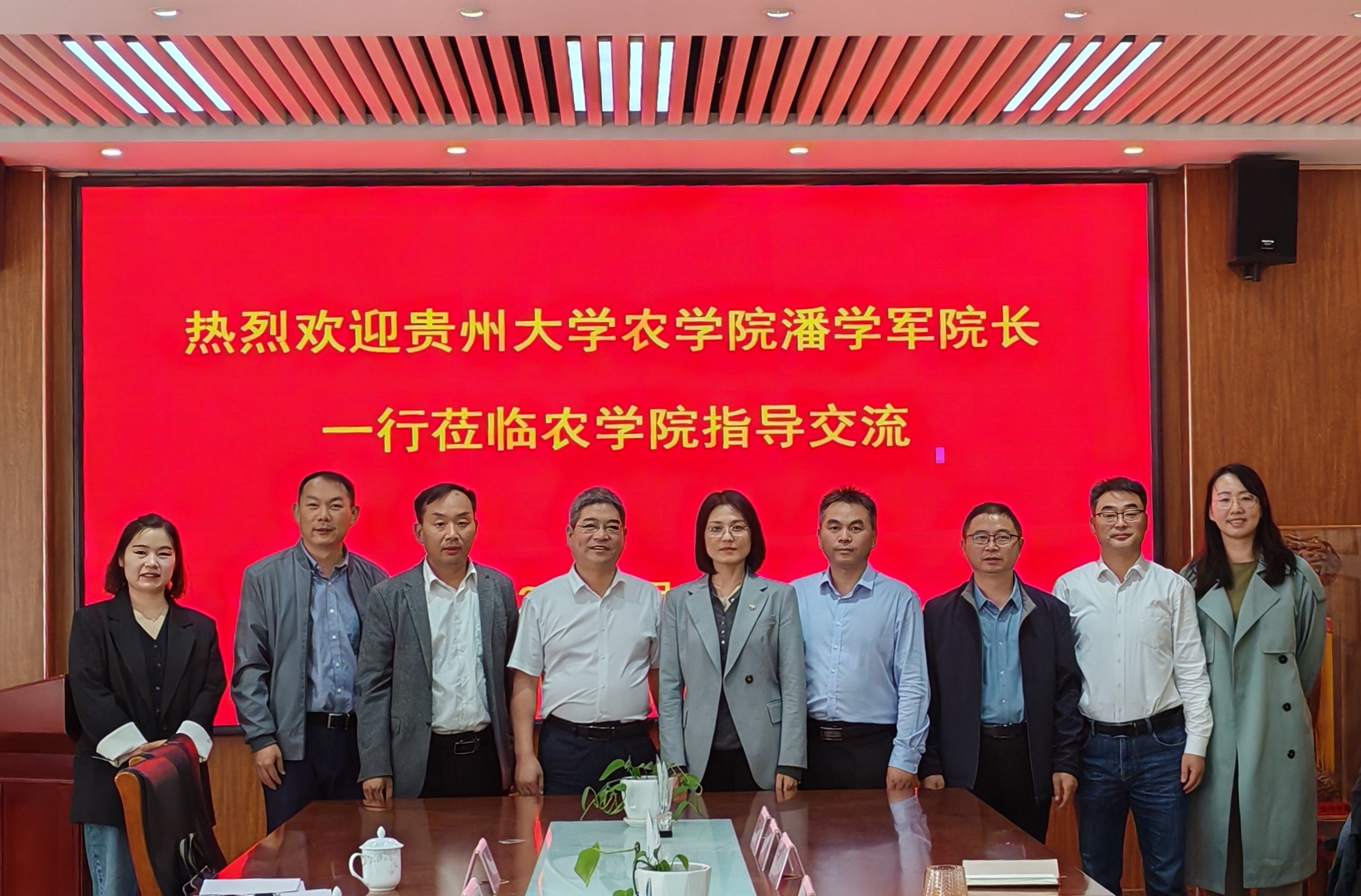 5月11日,贵州大学皇冠welcome体育登录入口院长潘学军、党政办主任赵路玥、中药材省级重点实验室主任王华磊一行到访皇冠welcome体育登录入口。学院党委书记马伟萍,院长马武军,党委副书记、副院长孙占伟,副院长赵长星、刘义国及系主任参加本次会议。