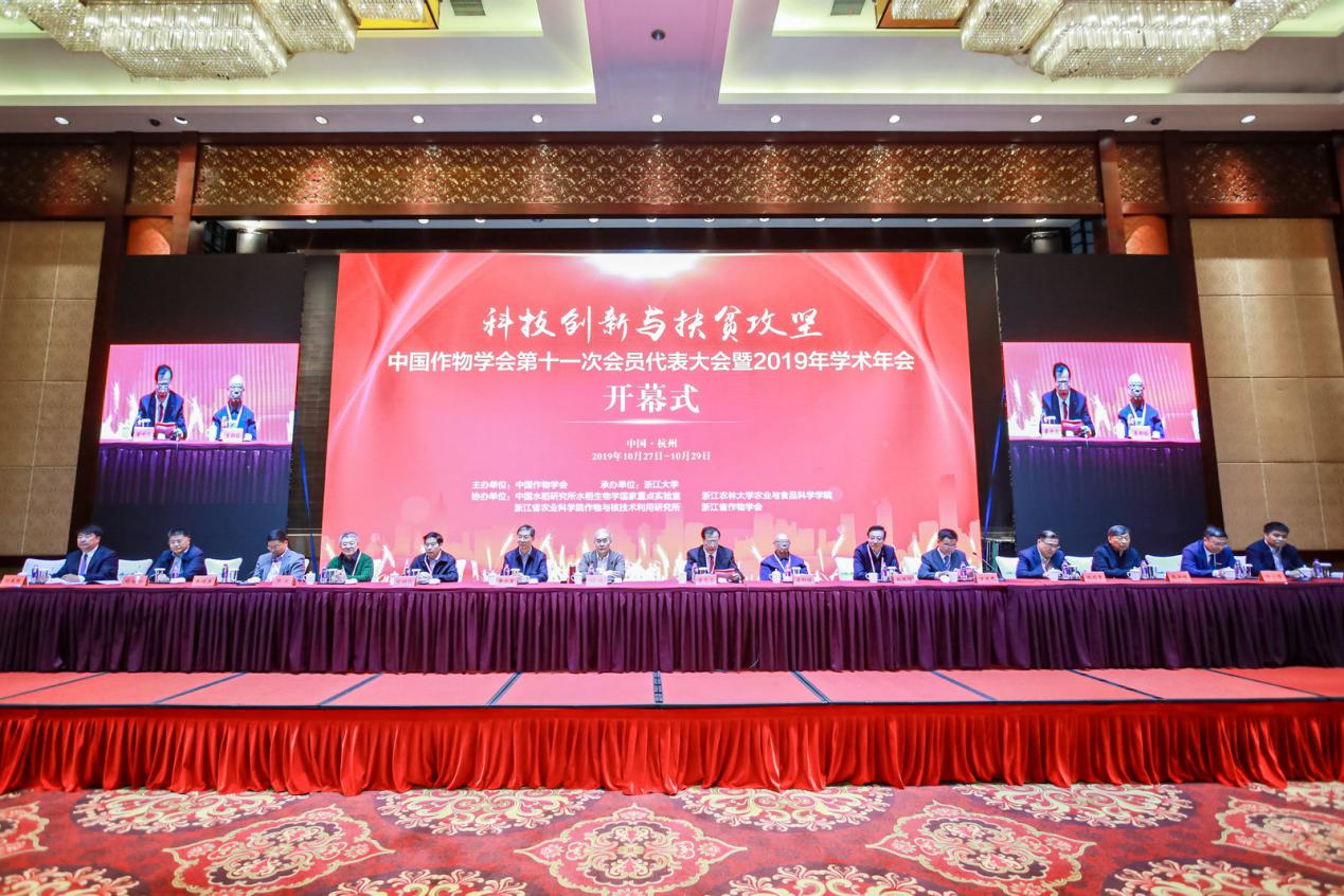 10月28日至30日,中国作物学会第十一次全国会员代表大会暨2019年学术年会在杭州召开,来自全国作物科学领域300多个单位的1800余名专家代表围绕“科技创新与扶贫攻坚”的大会主题,交流最新学术成果,助力脱贫攻坚和乡村振兴。本次会议由中国作物学会主办、浙江大学承办,共为期三天,包含院士公开课、大会学术报告、分论坛报告、研究生论坛、墙报评比等多种形式的学术交流活动。中国农业大学校长孙其信,国土资源部原副部长曹卫星,两院院士盖钧镒、刘旭、喻树迅、陈剑平、韩斌、张洪程,美国科学院院士朱健康等出席,校长宋希云、皇冠welcome体育登录入口院长刘庆昌等师生代表10余人参加。