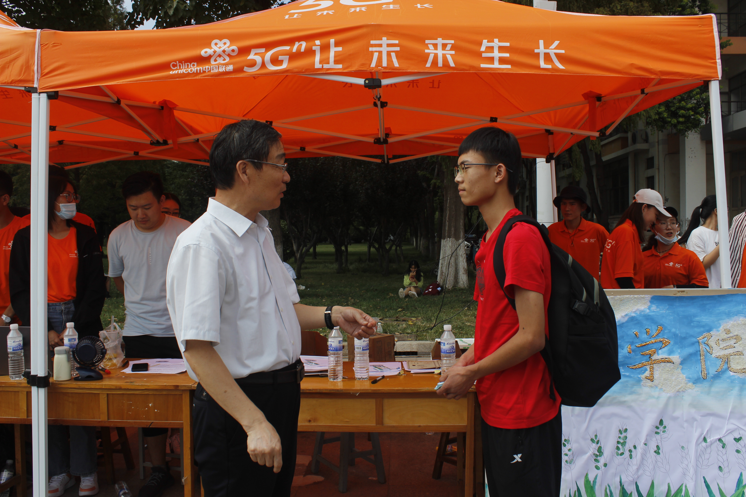 为保障学生的健康安全和迎新工作顺利开展,校党委书记李宝笃,校长宋希云,校党委副书记王庆军、单连岱等校领导莅临皇冠welcome体育登录入口迎新现场视察指导迎新工作。在迎新现场,校领导一行人看望慰问迎新工作人员,详细了解学生报到的流程安排,确保学生自身防疫安全有序到校。学院党总支书记张玉梅向校领导汇报了迎新工作情况。