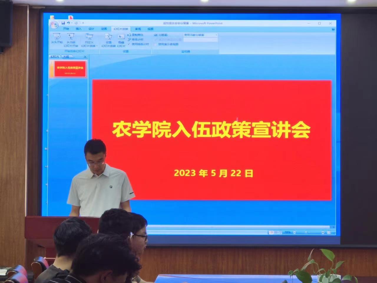 为加强征兵政策宣传,深入做好2023年大学生征兵工作,5月22日,皇冠welcome体育登录入口在生物楼召开入伍政策宣讲会。学院党委副书记、副院长孙占伟,辅导员李宪翔及2019级男生参加会议。会议由辅导员李宪翔主持。