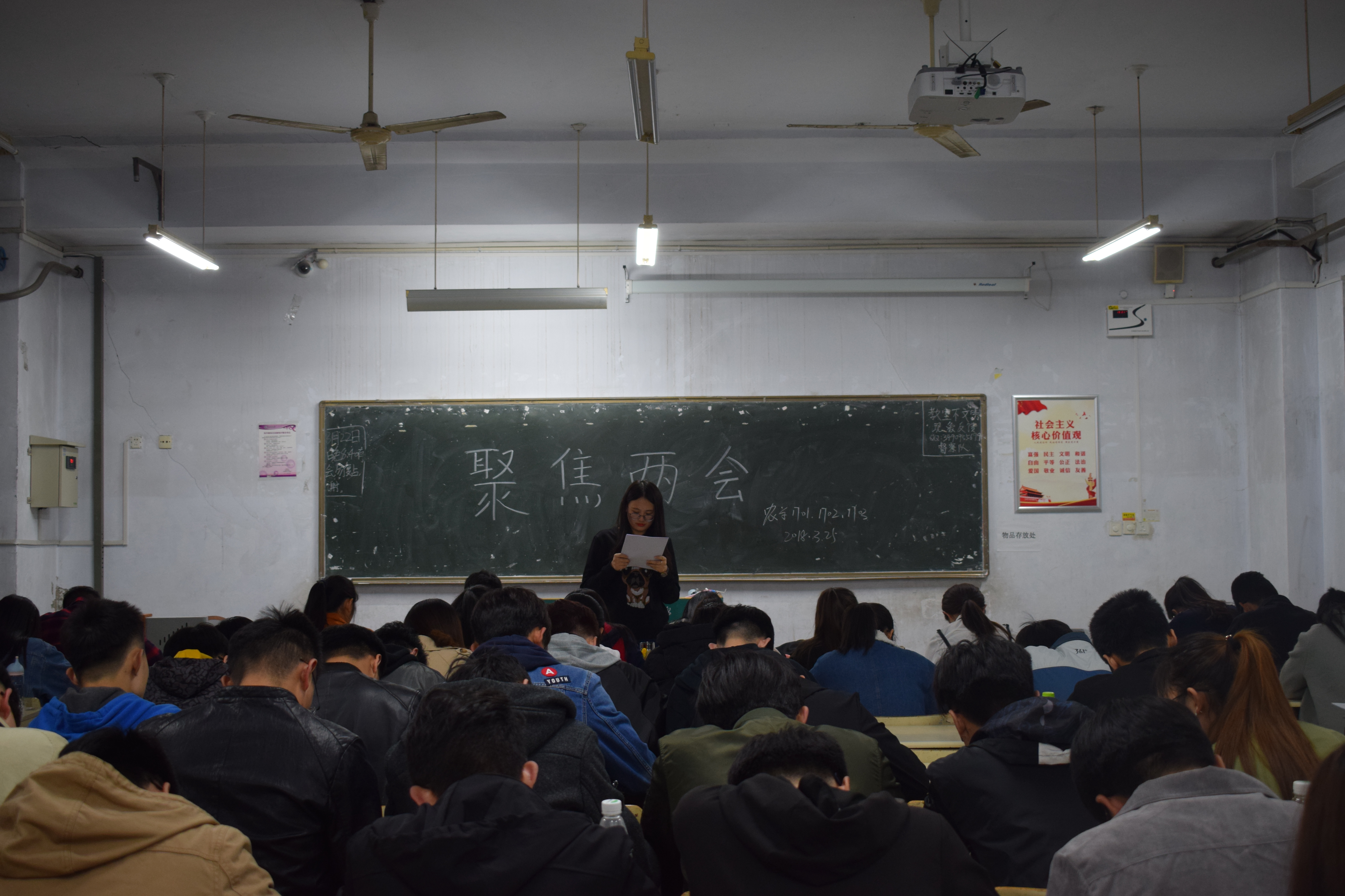 京华涌春潮,盛会聚伟力。为进一步增强学生对两会的认识,庆祝全国政协十三届一次会议在北京圆满闭幕,3月25日,皇冠welcome体育登录入口于教学区A区开展“聚焦两会”主题团课,皇冠welcome体育登录入口全体16、17级学生参与其中。