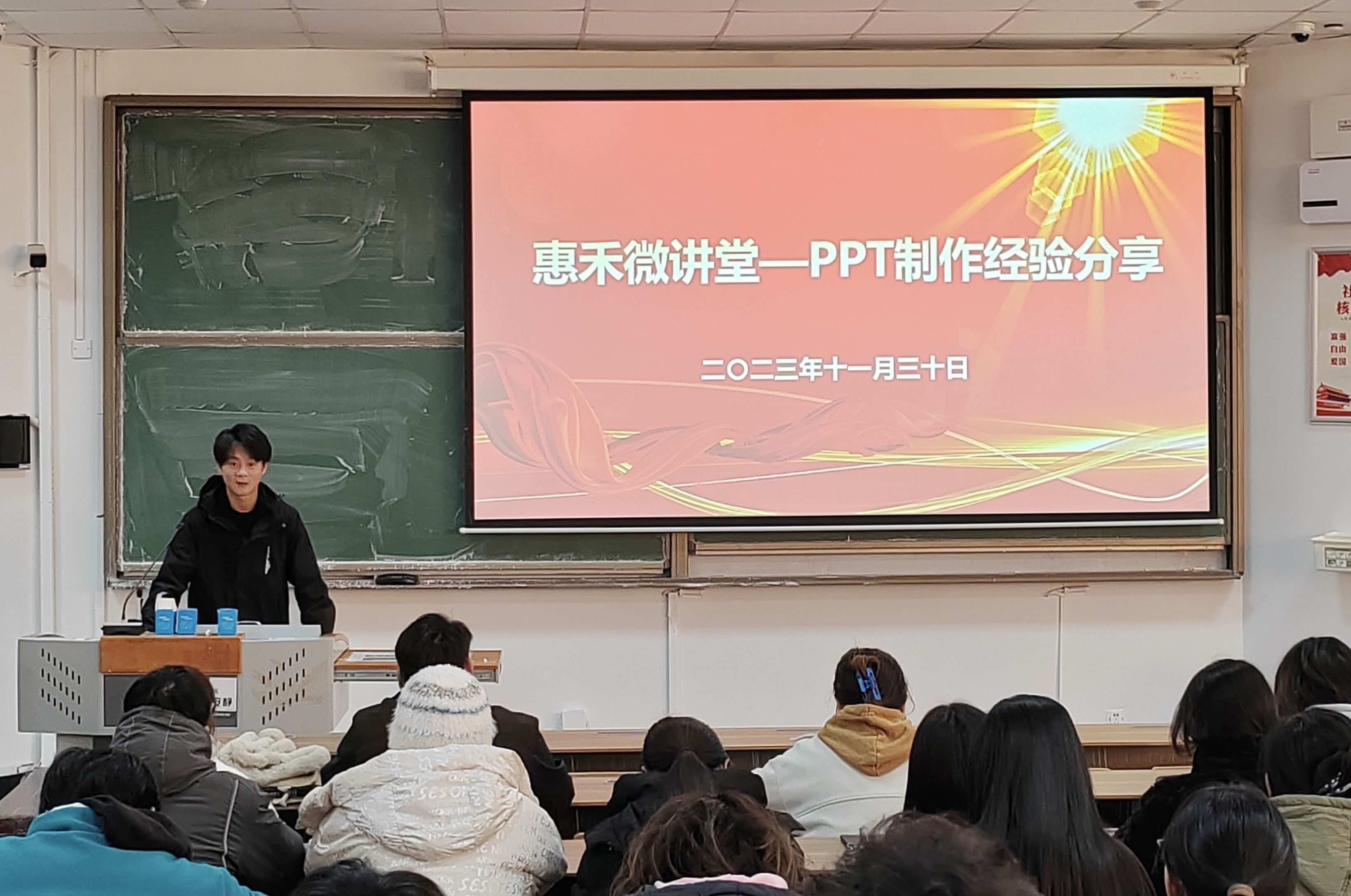 为提高学生干部办公操作能力,11月30日,皇冠welcome体育登录入口于教学楼开展惠禾微讲堂,就PPT制作进行培训。本次活动由学生会主席团成员、“知农爱农守初心 强农兴农担使命”PPT制作大赛一等奖获得者陈卓群主讲,学院学生干部参加。
