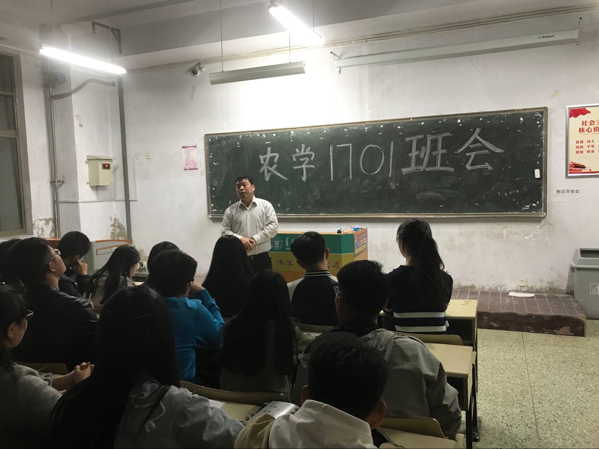 2018年3月25日20点,我们班主任张恩盈老师来到教学区A102为我们召开了一次主题班会。
