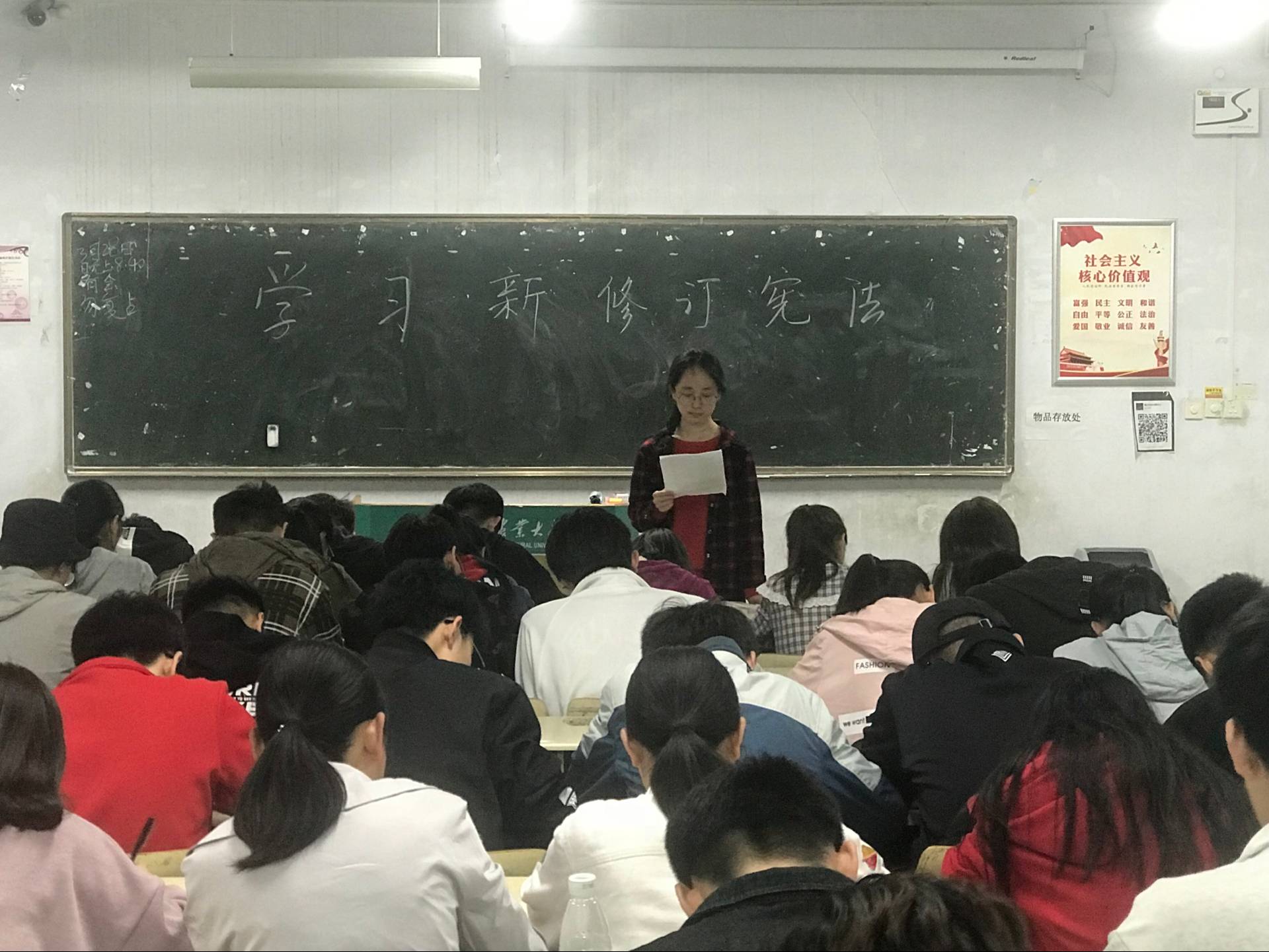 为增强宪法观念,弘扬宪法精神,4月1日,皇冠welcome体育登录入口在教学区A区开展学习《中华人民共和国宪法修正案》主题团课,2016级和2017级全体同学积极参加。