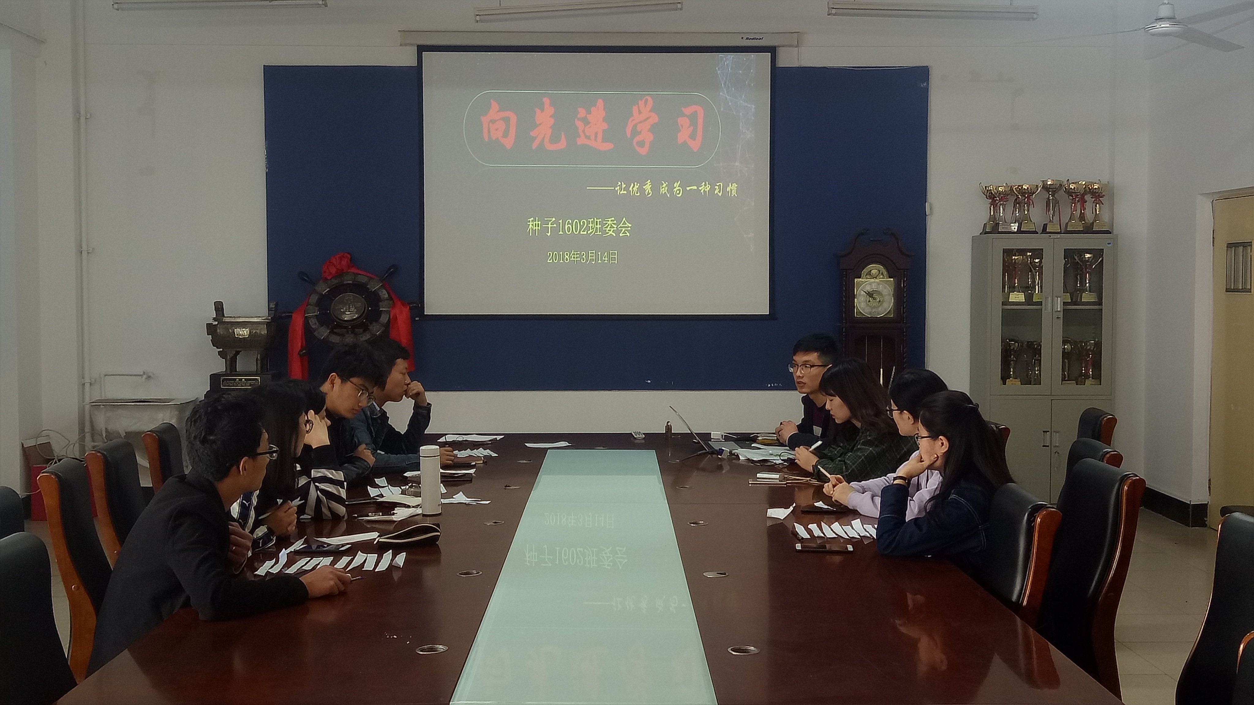3月14日上午,为了能够充分总结上学期班级综合情况,学习其他优秀班级的管理经验,种子1602班在生物楼N区206举行了新学期班委交流会,主题为“向先进学习——让优秀成为一种习惯”。班长陈同带领全体班委进行了学习交流,并就本班的现实情况进行了讨论和反思。