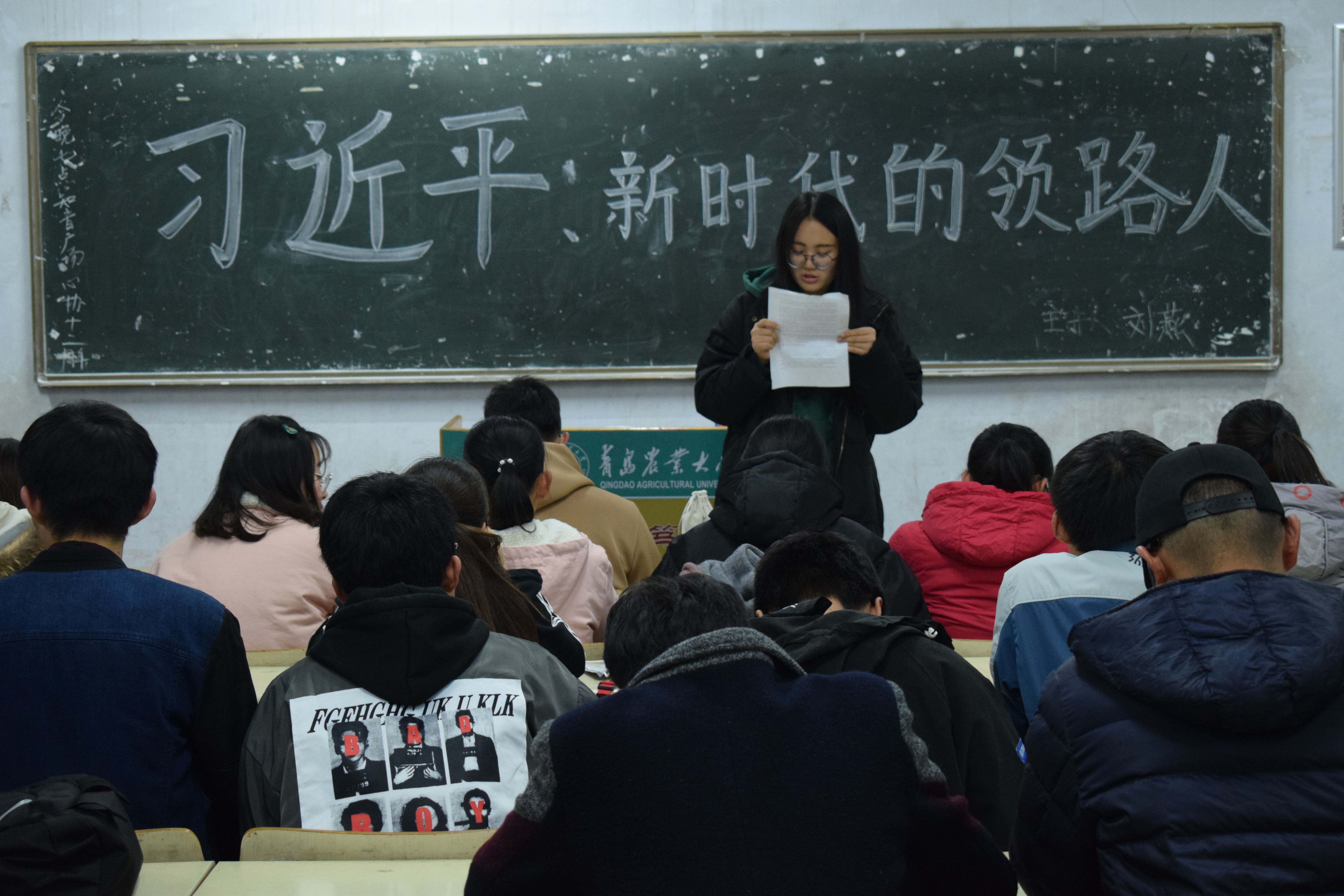 11月19日,皇冠welcome体育登录入口于教学区开展“习近平:新时代的领路人”主题政治学习活动,16、17级全体同学积极参加。