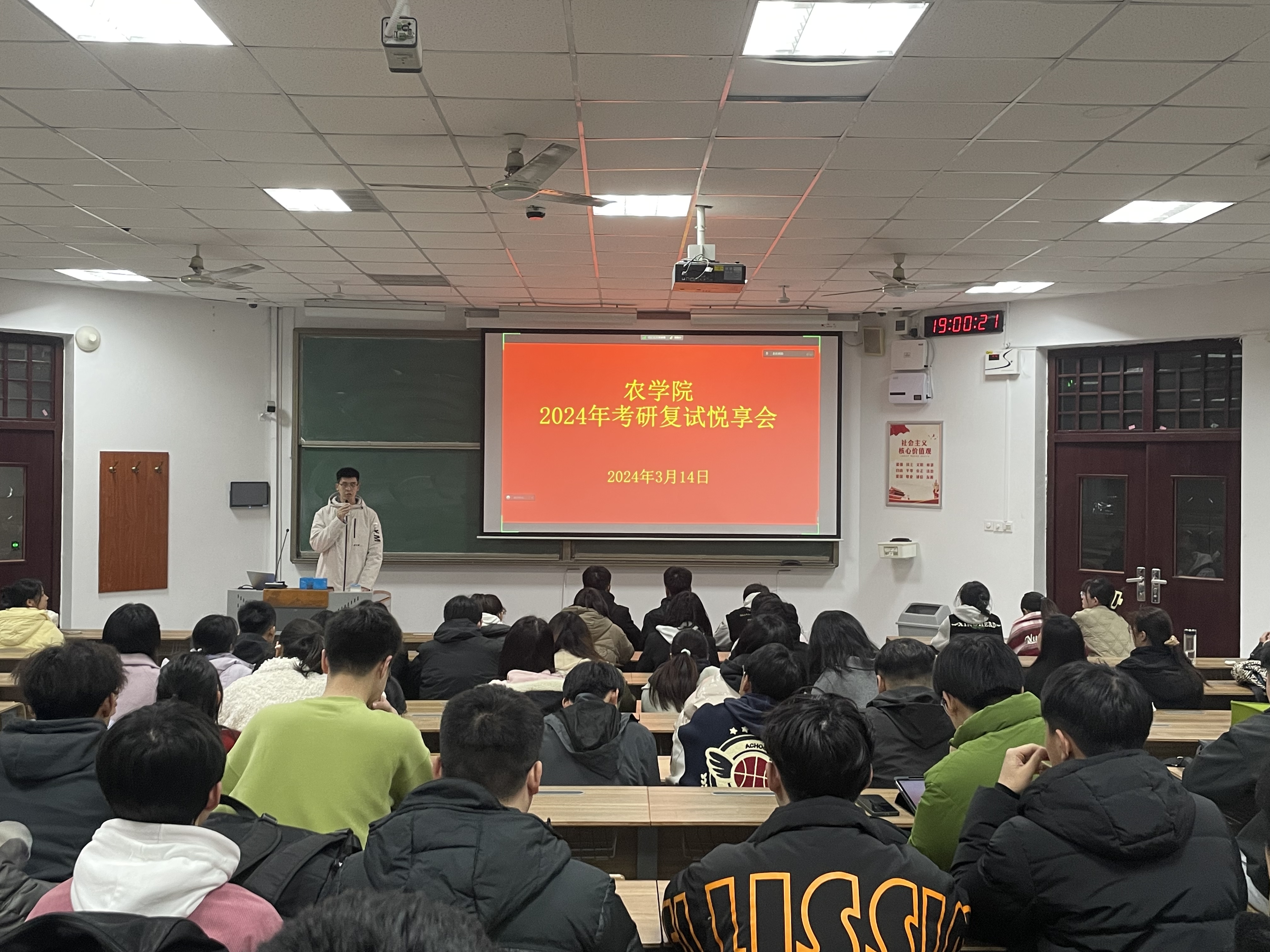悦享会上,考取中国农业大学的李冉以复试时的切身感受为切入点,对考研复试的流程进行介绍,鼓励同学们放平心态、勇于展现自己。考取山东农业大学的亓青松围绕积极面对调剂、如何获取调剂信息、实时关注调剂进程等方面做了剖析指导。考取南京农业大学的张自茹结合自身成功考研经历,就面试前期准备、面试注意事项及技巧等内容进行深度解读。考取西北农林科技大学的岳文杰表示应对面试老师提出的专业问题时,要端正自己的态度,实事求是的进行回答。考取中国农业科学院的逄岩详细介绍了复试笔试和面试过程中英语方面需要注意的问题,提醒同学们要注重夯实专业英语基础。考取华南农业大学的张国楠主要从考研复试的内容与形式、礼仪与着装等方面进行讲解。王清晖等其他几位同学就各自学校面试问答、专业笔试等方面进行分享。
