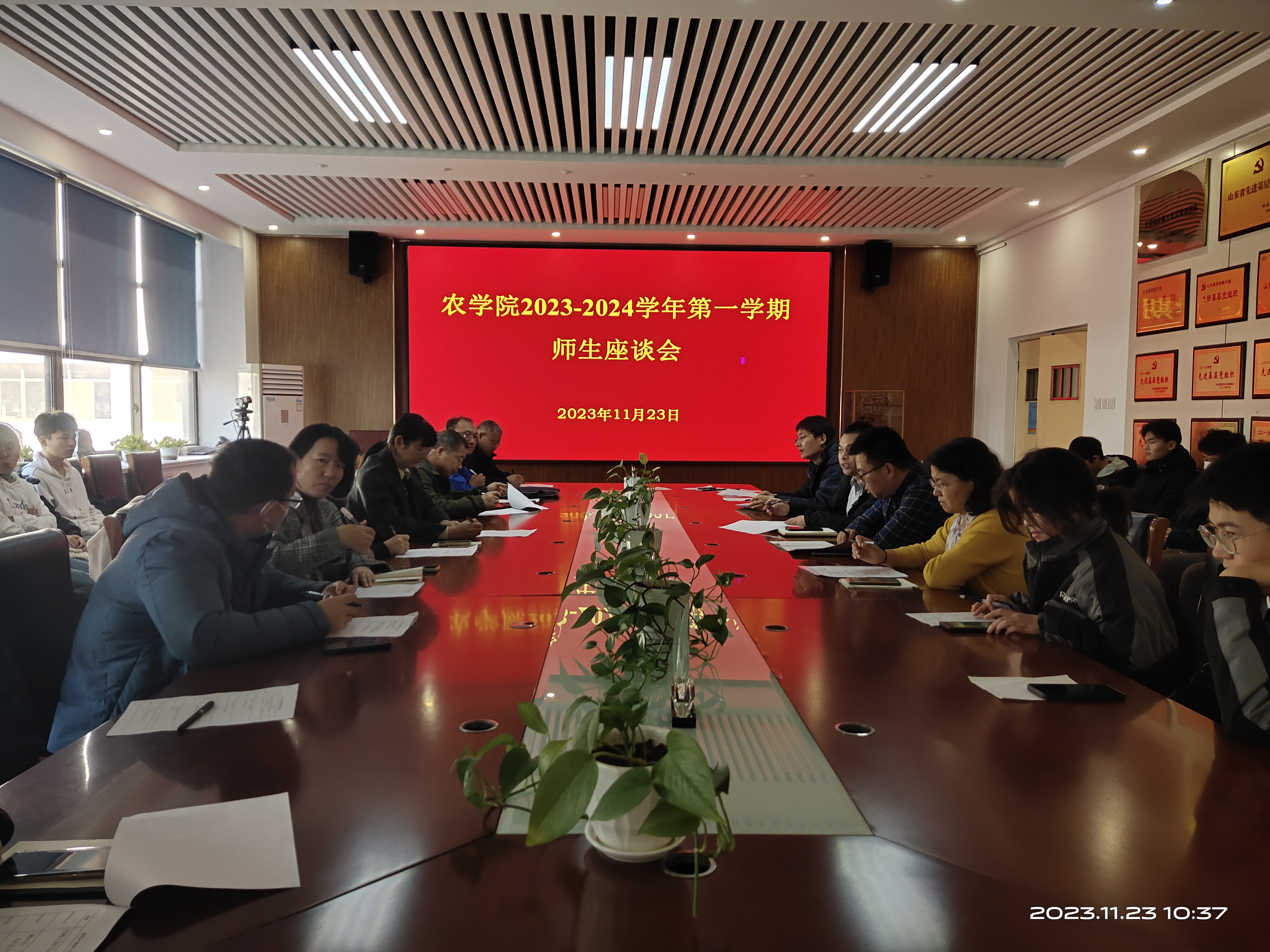 座谈中,与会学生代表根据前期在班级同学中收集的意见建议,结合个人的思考,各抒己见、依次发言,重点围绕学院教学管理、课堂教学、实习教学、科研实验和日常管理等方面的问题,提出诸多具有针对性的意见和建议。参会教师认真倾听、仔细记录,针对学生们提出的问题进行现场解答和深入交流,同时建议学生们提高课堂学习主动性,积极参与科研实践,为未来学习工作积累经验、锻炼能力。最后,刘义国表示学院高度重视学生们的意见和建议,会将学生们反映的问题及时进行落实反馈,为学生们创造良好的学习、生活环境。