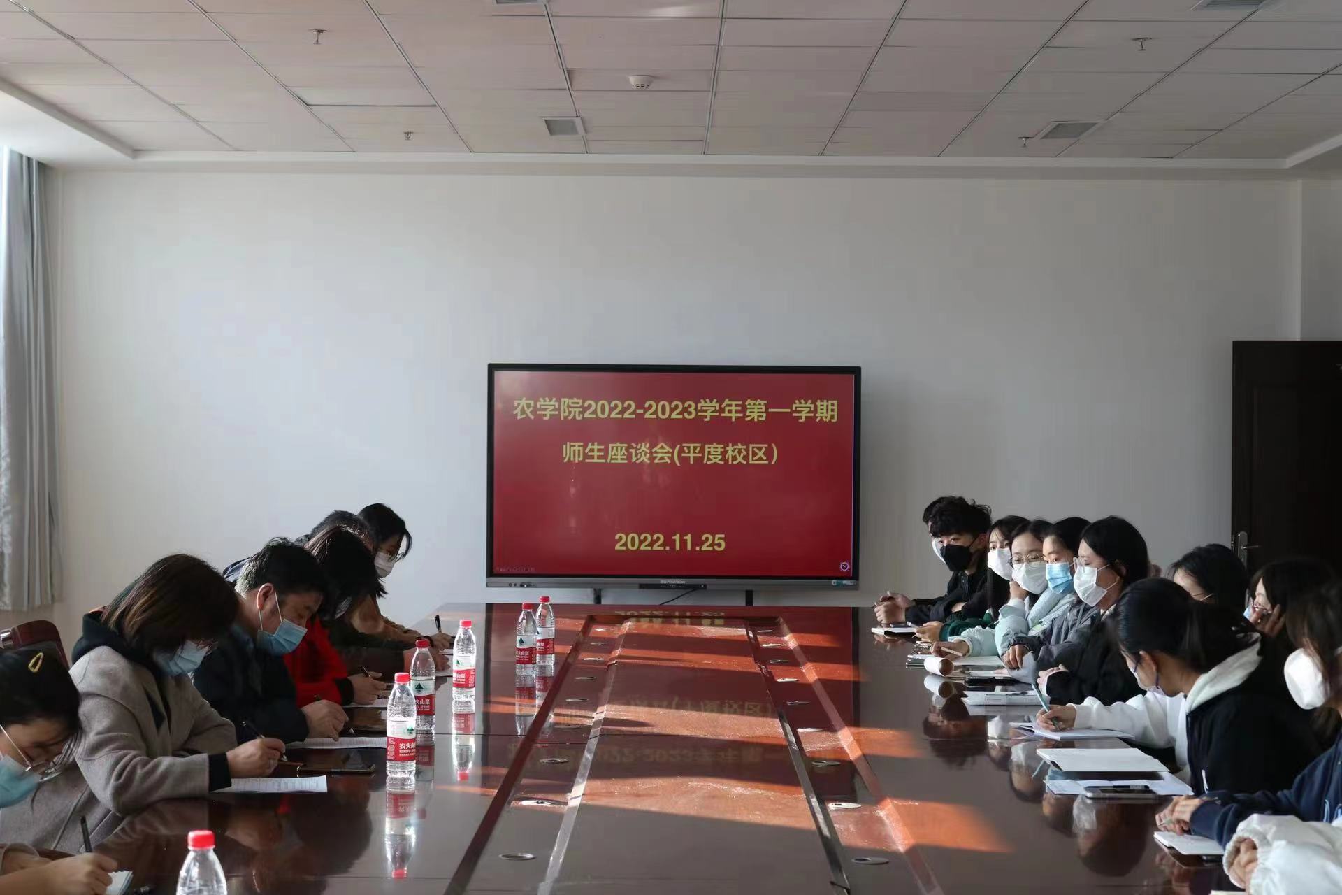 11月25日,皇冠welcome体育登录入口于平度校区大学生活动中心举行2022-2023学年第一学期师生座谈会,学院党委书记马伟萍、院长马武军、党委副书记孙占伟、副院长张恩盈、教学秘书卢兆双、辅导员都叶奇和2022级学生代表参加会议。会议由张恩盈主持。