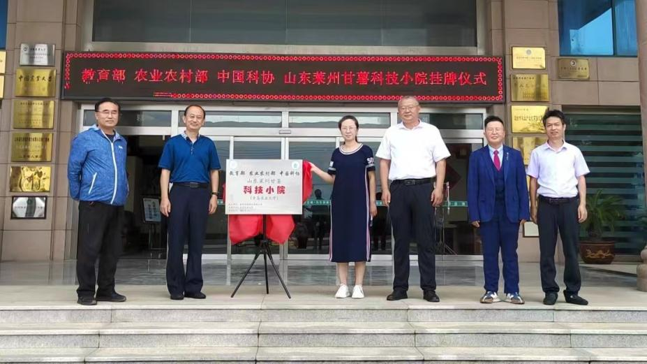 9月19日,青岛农业大学山东莱州甘薯科技小院挂牌仪式在莱州市金海种业举行。青岛农业大学研究生处副处长张妮妮,学院党委副书记、副院长孙占伟,山东省薯类产业技术体系副首席专家、科技小院首席专家、皇冠welcome体育登录入口教授隋炯明,莱州市农业农村局局长石坚伟、科技局副局长提建新,金海农服总经理杨珊共同为山东莱州甘薯科技小院挂牌。