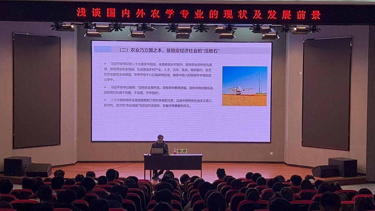 11月25日,皇冠welcome体育登录入口院长马武军在平度校区博学楼多功能报告厅为学院2022级学生做“浅谈国内外农学专业的现状及发展前景”的专题讲座,学院团委书记石勇主持。