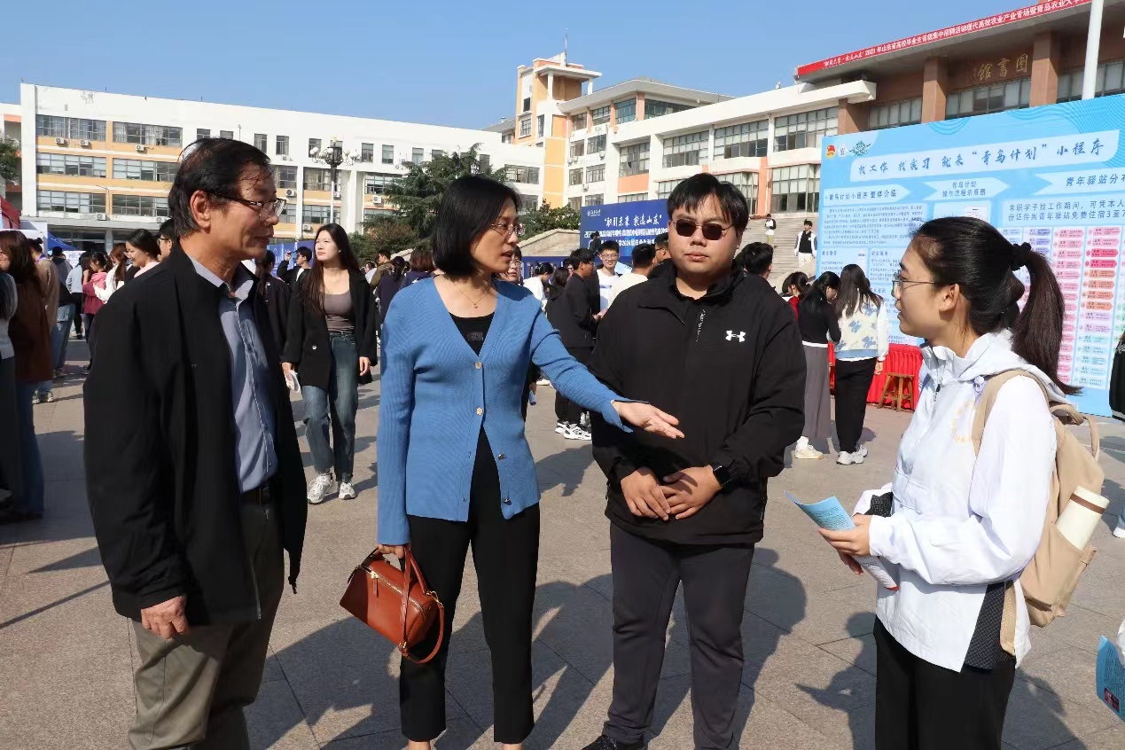 为进一步畅通就业渠道,提供精准就业服务,10月14日,“职引未来,就选山东”青岛农业大学2024届毕业生秋季双选会在虹子广场举行。学院党委书记马伟萍,院长马武军,党委副书记、副院长孙占伟,团委书记石勇,辅导员李宪翔到场参加。