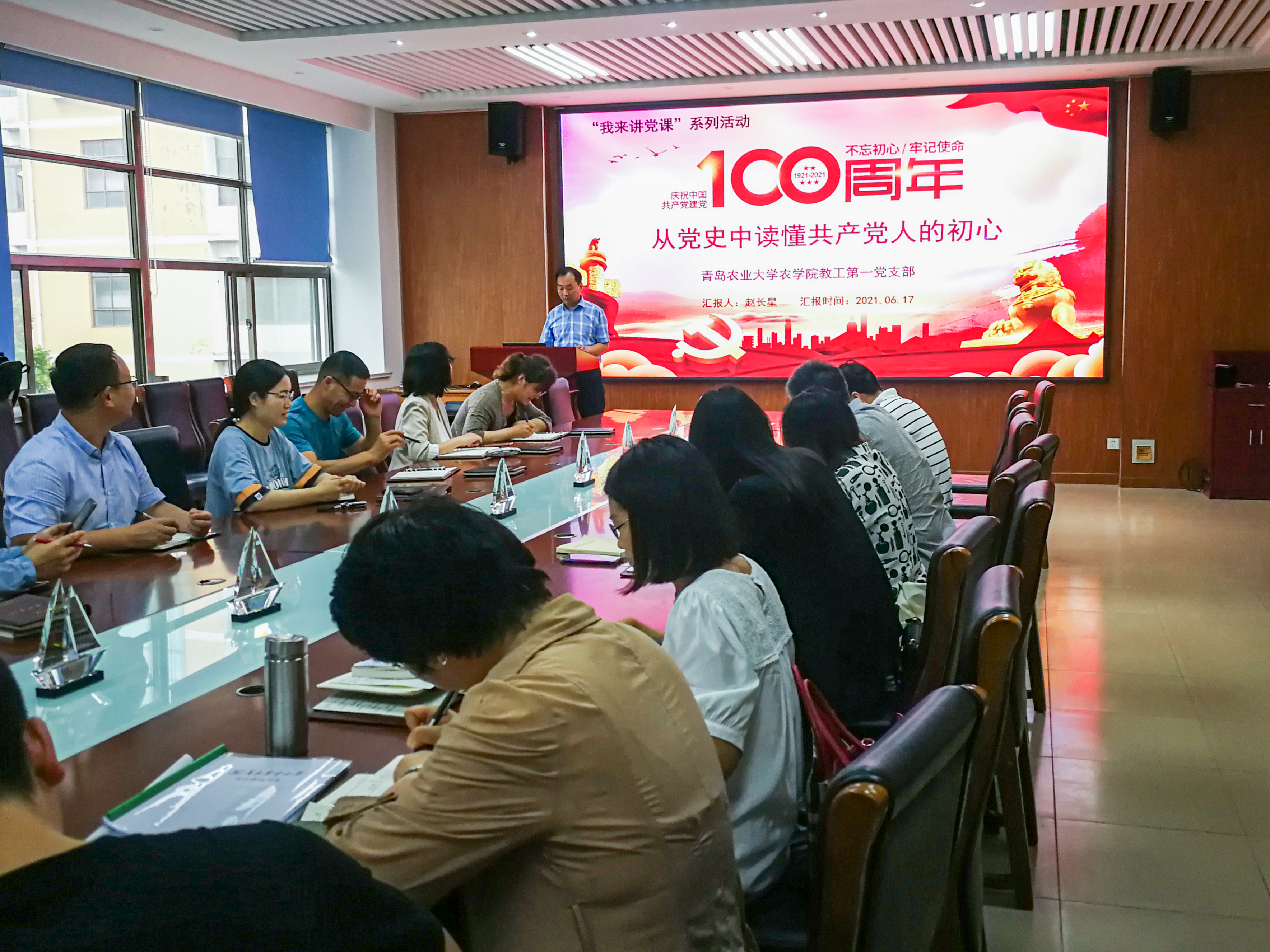 6月17日,学院第一党支部书记赵长星以“从党史中读懂共产党人的初心”为主题给支部党员上了一堂生动的党课,支部全体党员参加。