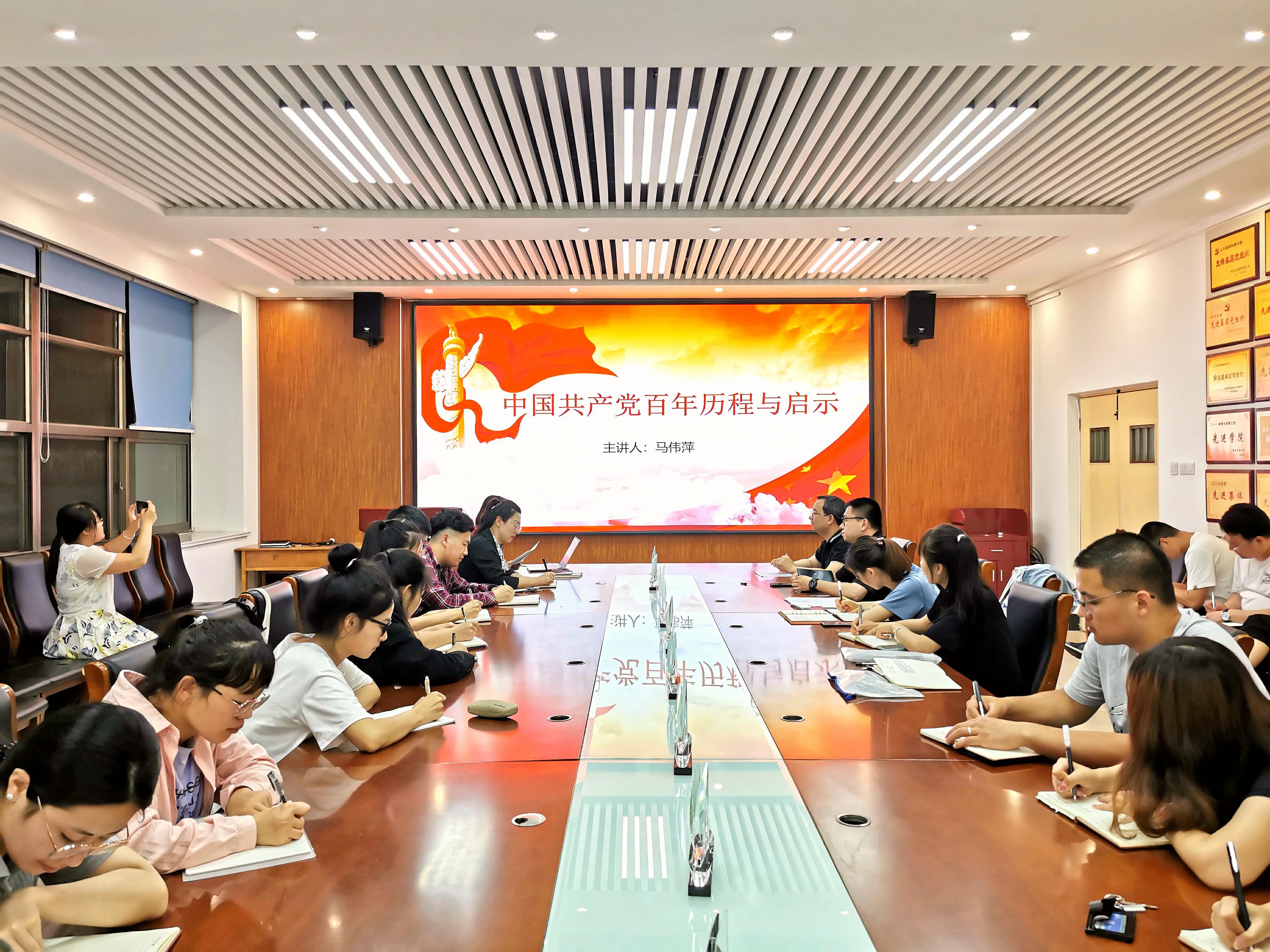 6月17日,学院党总支副书记、第三党支部书记马伟萍于生物楼为学生党员讲授“中国共产党百年历程与启示”主题党课。皇冠welcome体育登录入口团委书记、第四党支部书记石勇,辅导员刘宁、刘源和全体学生党员参加。